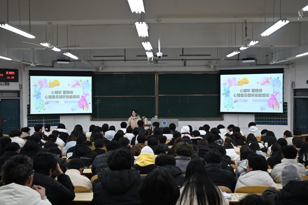 为提升心理委员的助人意识与专业能力,进一步夯实学校心理健康教育的学生支持网络,12月18日下午,学校在明理楼1101教室开展“心倾听 爱陪伴”心理委员倾听技能专题培训。心理中心温小超老师主讲,2025级各班心理委员、各学院心理部联盟成员及心理协会成员共同参训。