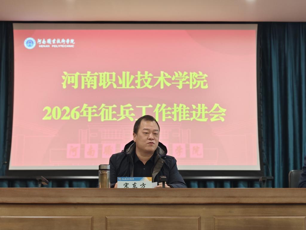 会上,宋东方首先对学校2025年征兵工作进行了简要总结,充分肯定了去年在宣传动员、报名服务、政策落实等方面取得的成绩,同时也深入分析了当前征兵工作面临的形势与挑战。随后,宋部长结合国家最新方针政策和学校实际情况,对2026年征兵工作进行了详细部署,明确了新一年的工作目标、重点任务和时间节点,要求各二级学院进一步提高政治站位,强化家校联系机制,切实压实征兵宣传工作责任,确保2026年征兵工作开好局、起好步。