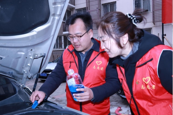活动现场,志愿者们紧扣社区居民日常用车需求,依托社区便民设施快速搭建起临时服务站点。身着统一志愿服装的志愿者们分工协作、有条不紊,手持专业洗车工具,细致开展义务洗车、免费添加玻璃水等实用便民服务。从车身冲洗、泡沫擦拭,到边角缝隙清洁、车身水渍擦干,志愿者们始终认真细致、精益求精,不放过任何一处细节,让一辆辆沾满灰尘的车辆焕然一新。专业、贴心、周到的服务,赢得了社区居民的一致好评和广泛认可。