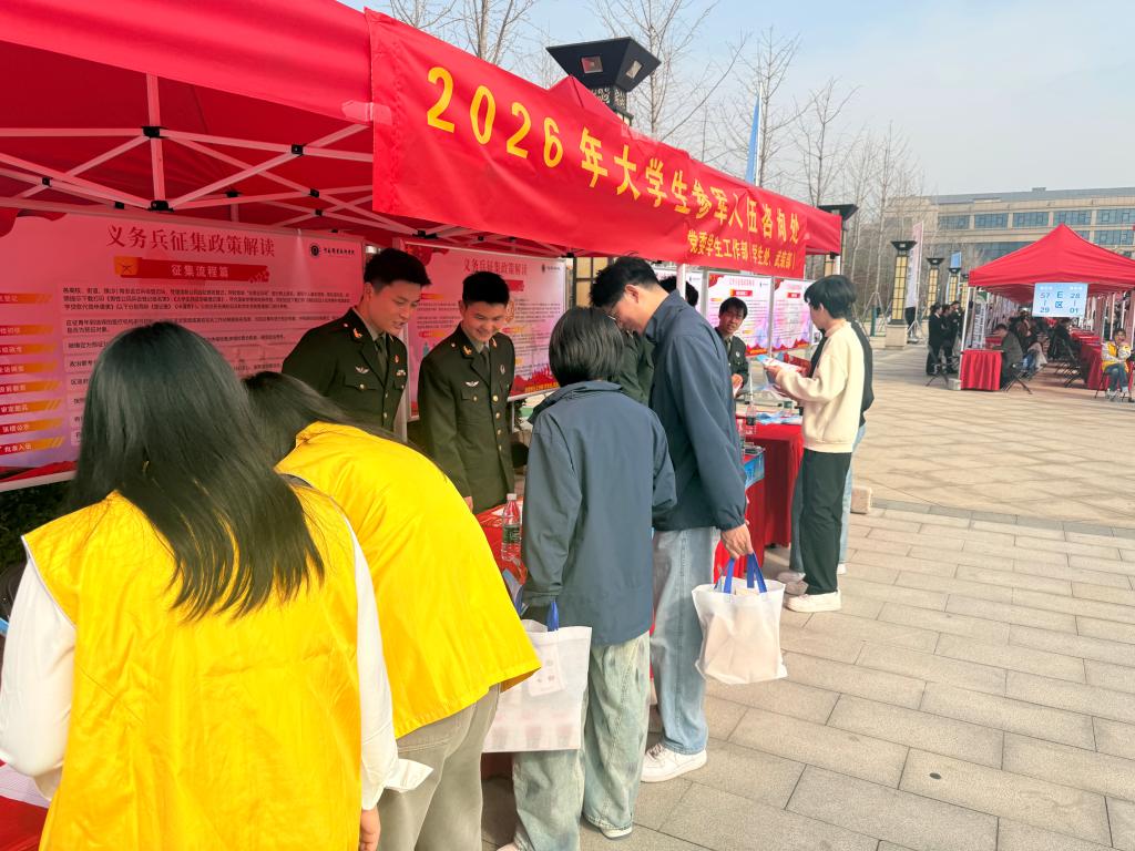 为进一步做好2026年大学生征兵工作,激发青年学子参军报国热情,3月26日上午,河南职业技术学院结合校园2026届毕业生春季大型双选会,同步举办2026年大学生征兵宣讲活动。活动现场气氛热烈,吸引了众多学生前来咨询。
