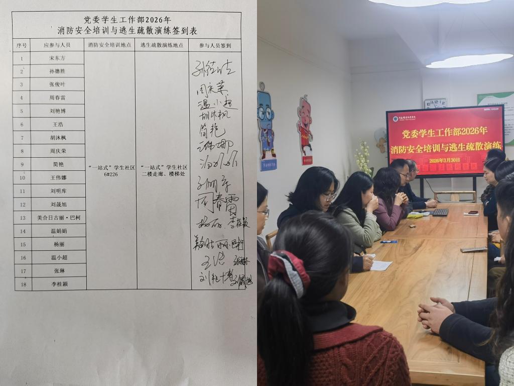 3月30日上午,党委学生工作部在“一站式”学生社区组织开展2026年度消防安全培训与逃生疏散演练活动,副部长孙德胜及部门人员参加活动。